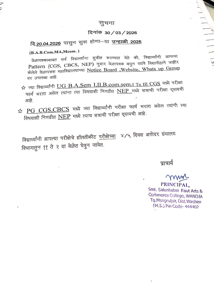 Smt. Salunkabai Raut Arts & Commerce College, Wanoja